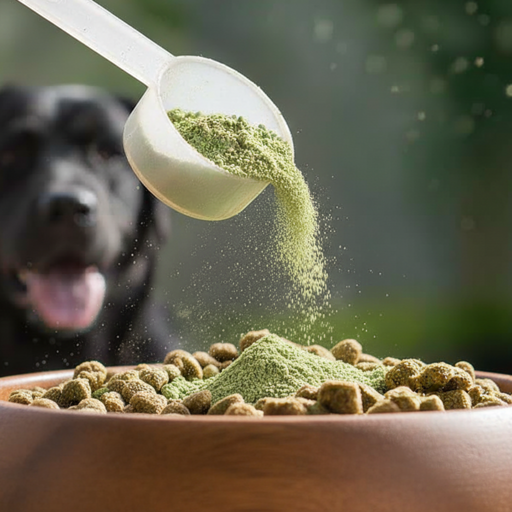 It couldn't be easier. Just sprinkle the recommended amount onto your dog's food once per day. Each jar comes with a pre-measured scoop for perfect dosing.